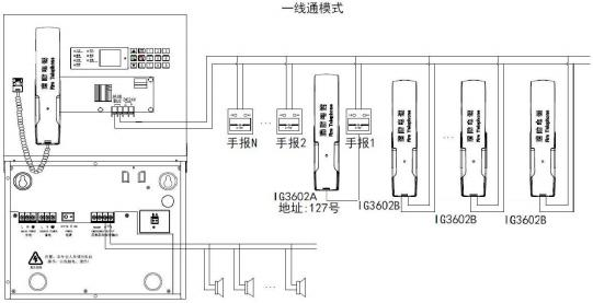推薦配置 | 青鳥消防手報(帶插孔)配置 IG3602B、 電話分機 IG3602A 均直接連接到總線端子上(無極性) |