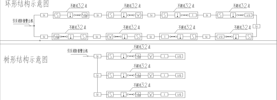 ◇在進行環(huán)形布線時,當報警總線上的某點發(fā)生短路時,只會造成距該短路點最近的(前后兩側)兩只隔離模塊動作,將該段問題線路從報警總線中斷開,保證報警總線上其他設備正常工作;