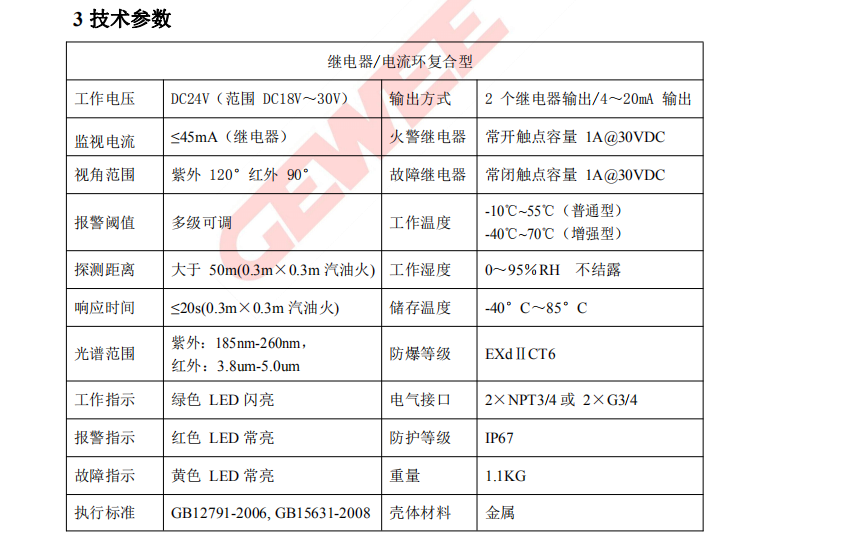 GW810UVIR2點(diǎn)型紫外/紅外復(fù)合火焰探測(cè)器使用說明書