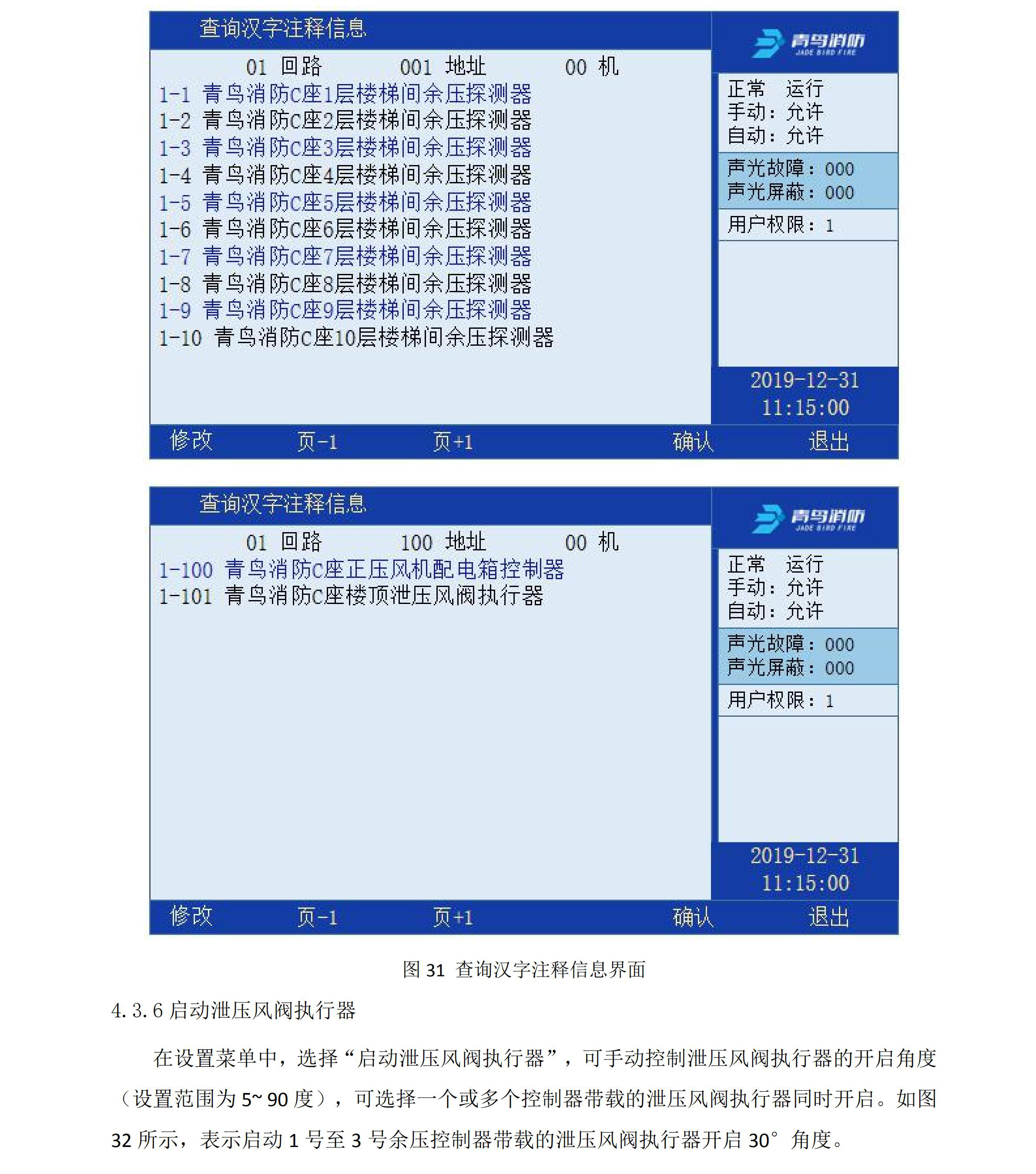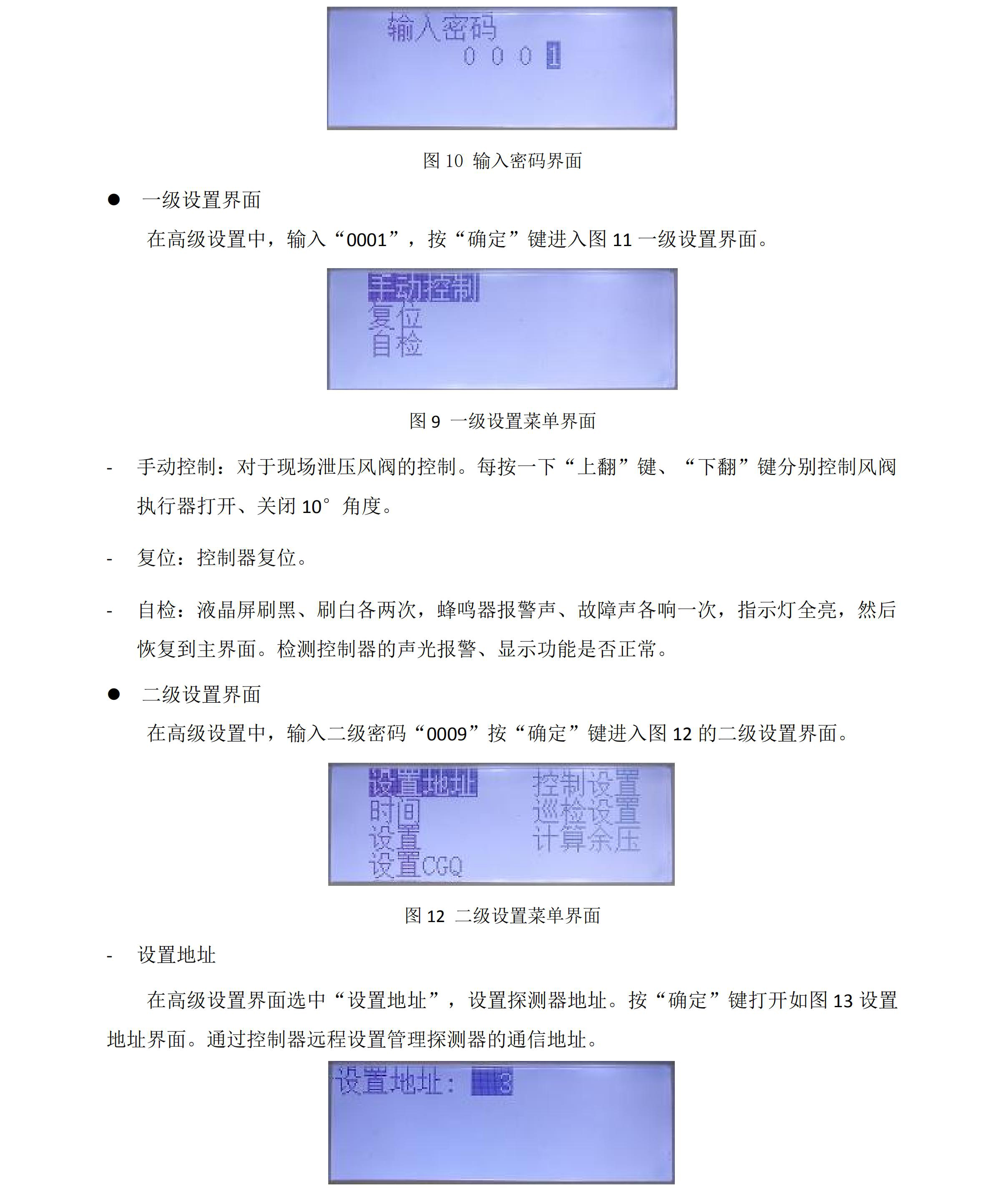 - *號(hào)**Pa 報(bào)警:*號(hào)探測(cè)器余壓報(bào)警,報(bào)警壓差**Pa。