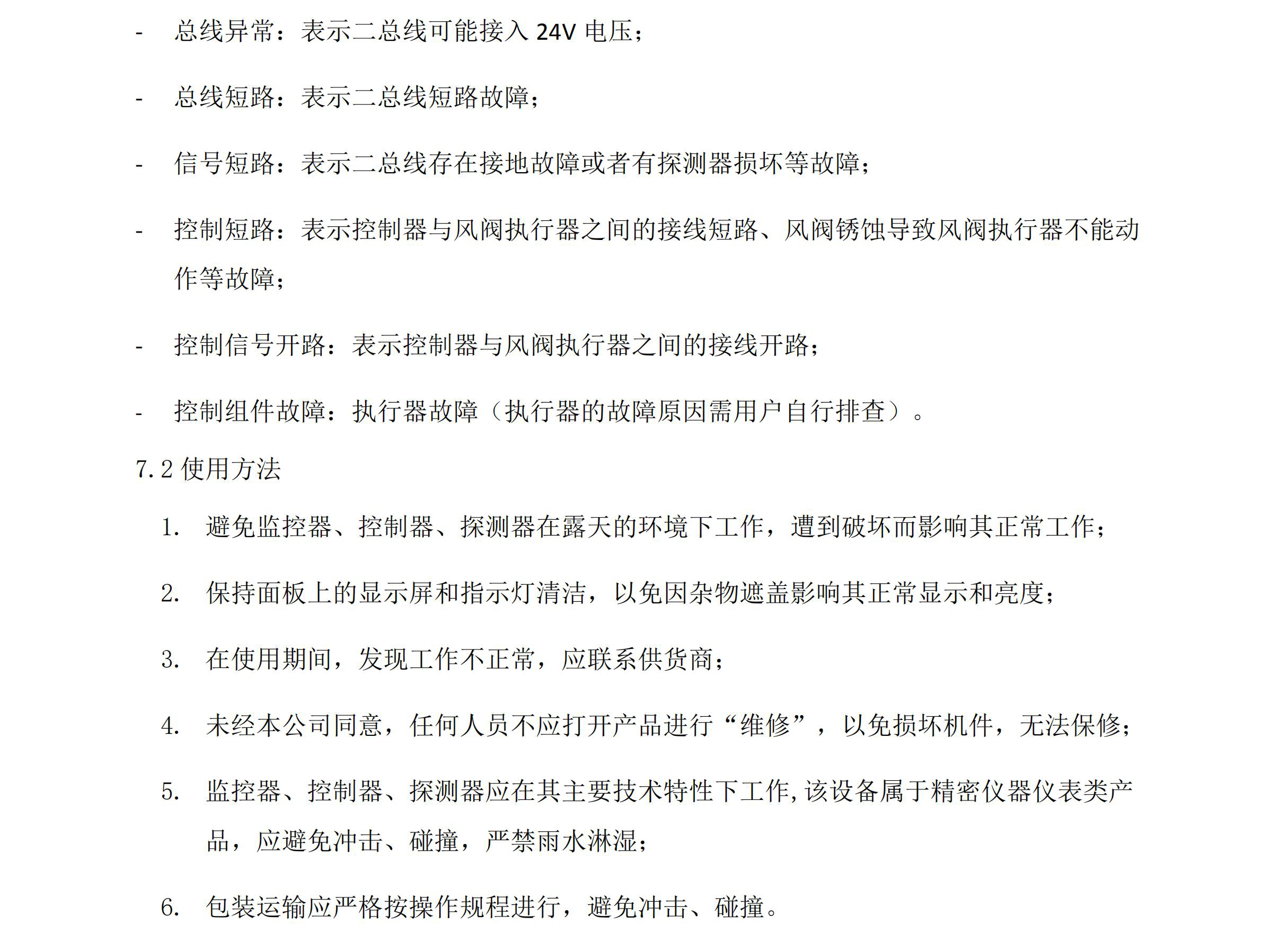 -控制器與探測(cè)器主機(jī)的通訊總線發(fā)生短路、斷路時(shí),控制器會(huì)在 100s 內(nèi)發(fā)出故障聲、光報(bào)警信號(hào),顯示故障地址。、控制器接收或檢測(cè)到探測(cè)器發(fā)來(lái)的故障信號(hào)(探測(cè)器自身故障、編碼錯(cuò)誤、離線等),在 100s 內(nèi)發(fā)出故障聲、光報(bào)警信號(hào),顯示故障地址。