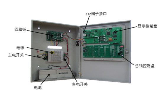 JBF-61S20監(jiān)控器包括:顯示控制盤、回路板、總線控制盤、電源、電池等;