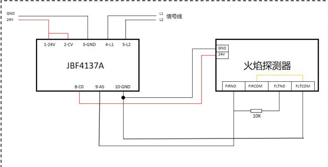 感溫線纜繼電器接線端子對應(yīng)火焰探測器繼電器接線端子如下: